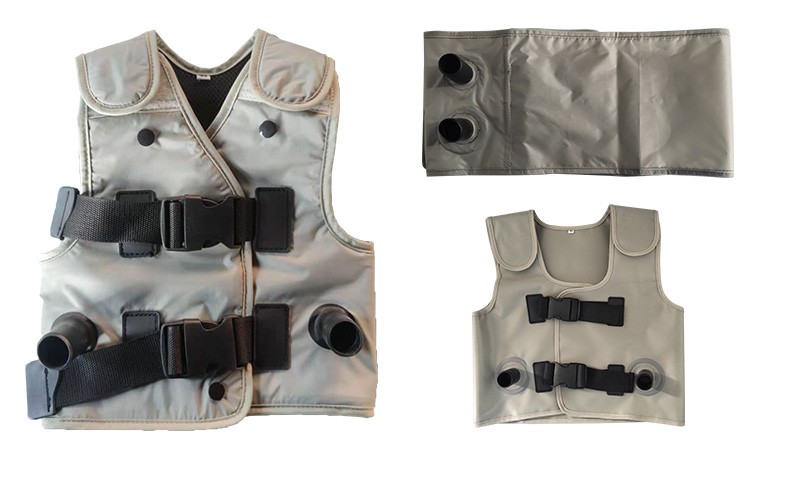 背心式排痰機作用原理: 通過模擬正常生理咳嗽的原理,將患者所穿專用充氣背心用導氣軟管連接到高速脈沖泵上,并快速地充氣和放氣,使患者胸壁發(fā)生有規(guī)律的舒張運動,患者氣道和肺部發(fā)生自主的震顫氣流和定向引流力,促使呼吸道粘液及各個肺葉深部代謝物松弛,液化、脫落;并在定向引流力的作用下將已液化脫落的代謝物按照選擇的方向(如細支氣管→支氣管→氣管)排出體外。